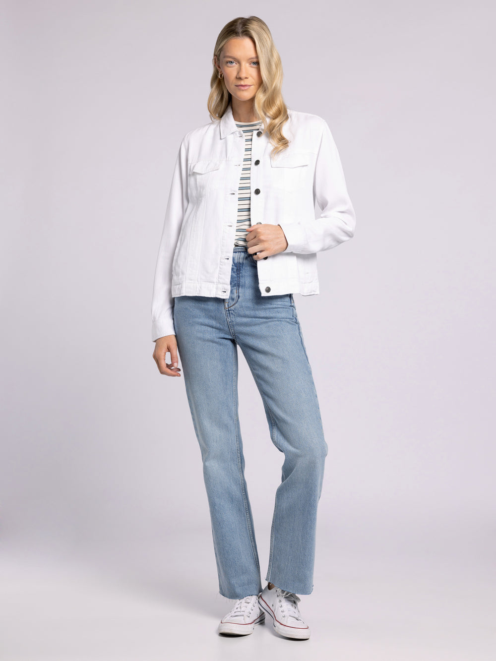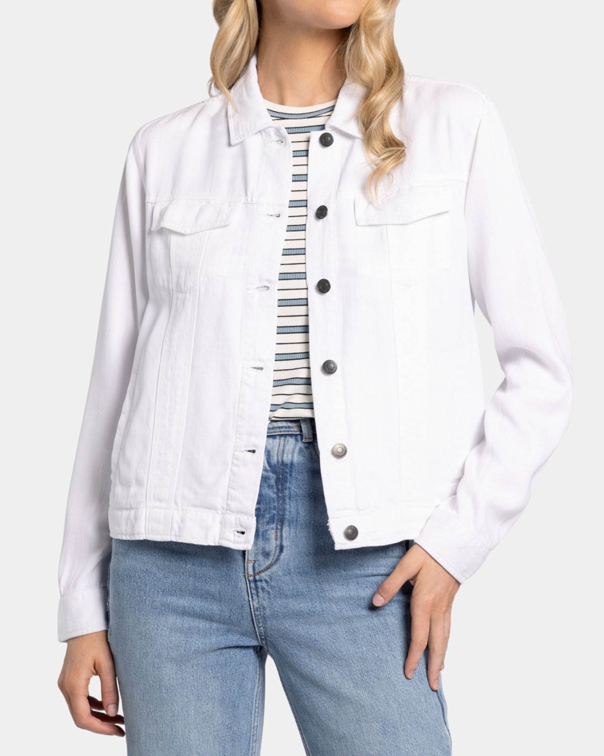 An ultra soft jacket that looks like a jean jacket, but feels like your favorite t-shirt. Perfect for layering.