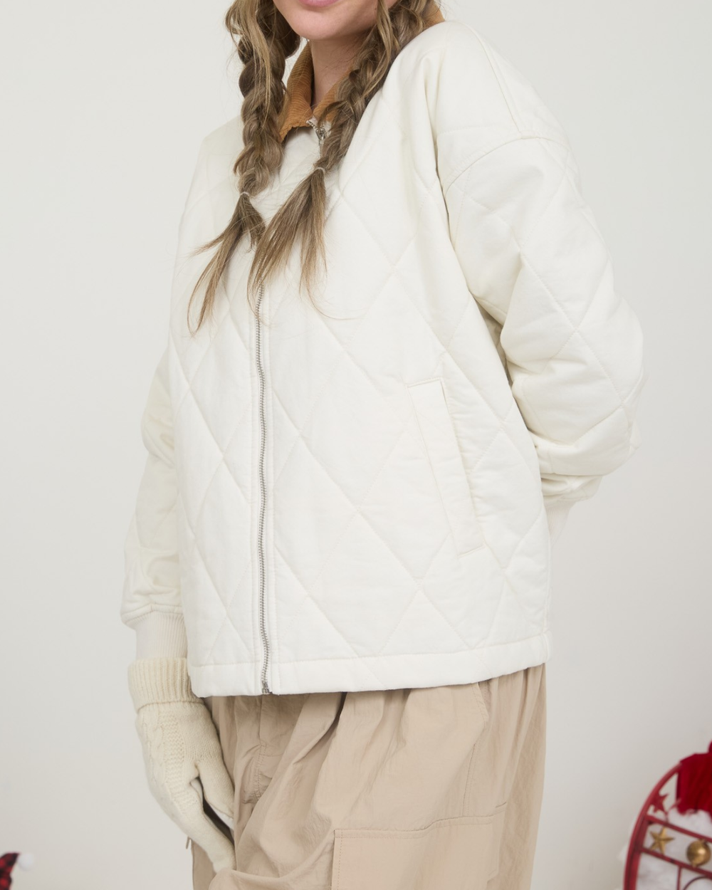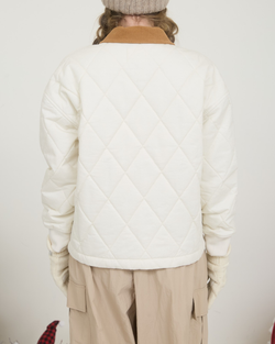 Stay cozy and chic in this quilted jacket featuring a charming corduroy collar in ivory. The perfect layer for crisp days—lightweight enough for layering, stylish enough to steal the show. Quilted for warmth without the bulk, this jacket pairs effortlessly with everything in your closet.