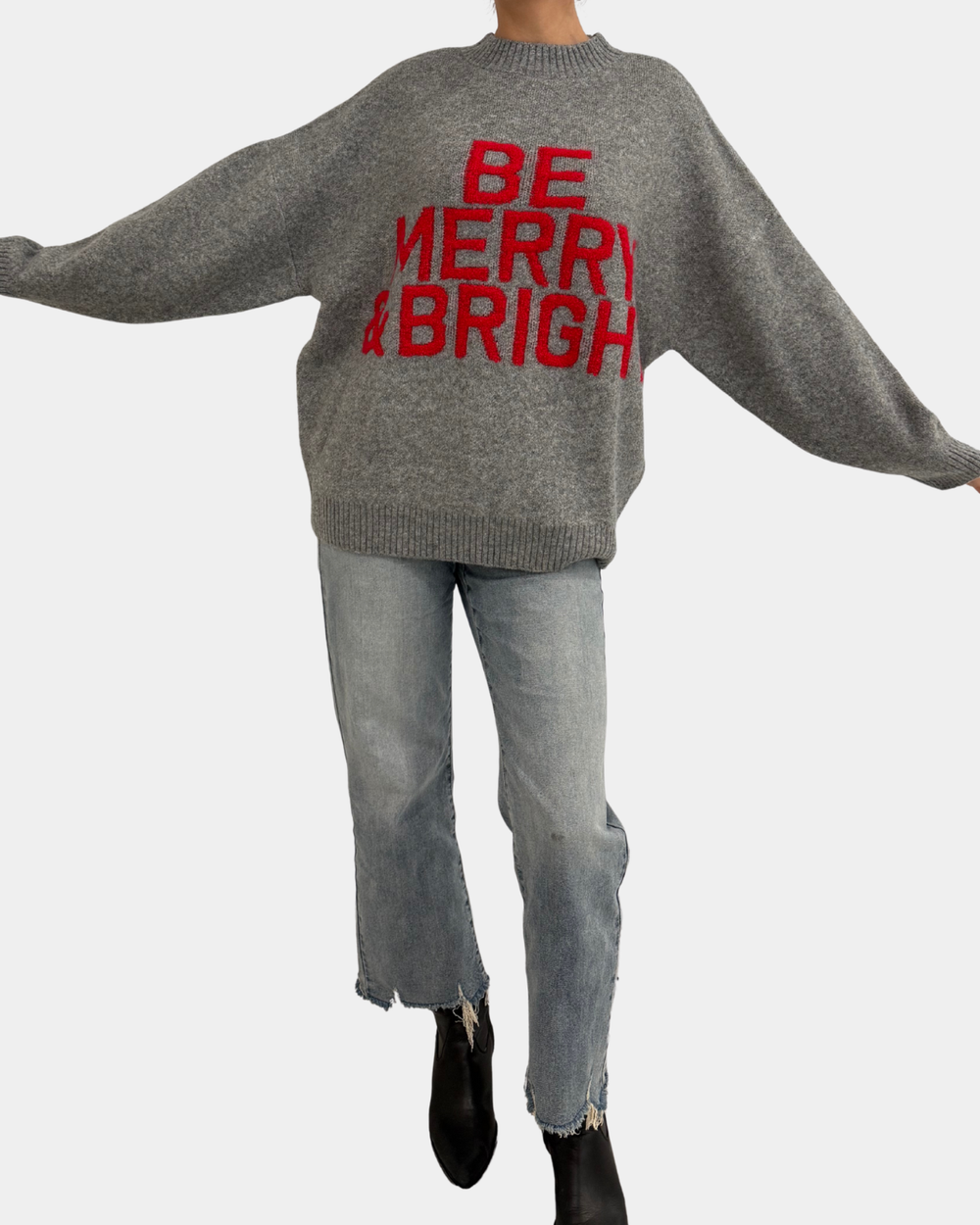 Spread the holiday cheer in this charcoal sweater with a feel-good message. Cozy, comfortable, and just the right amount of festive without being over the top.