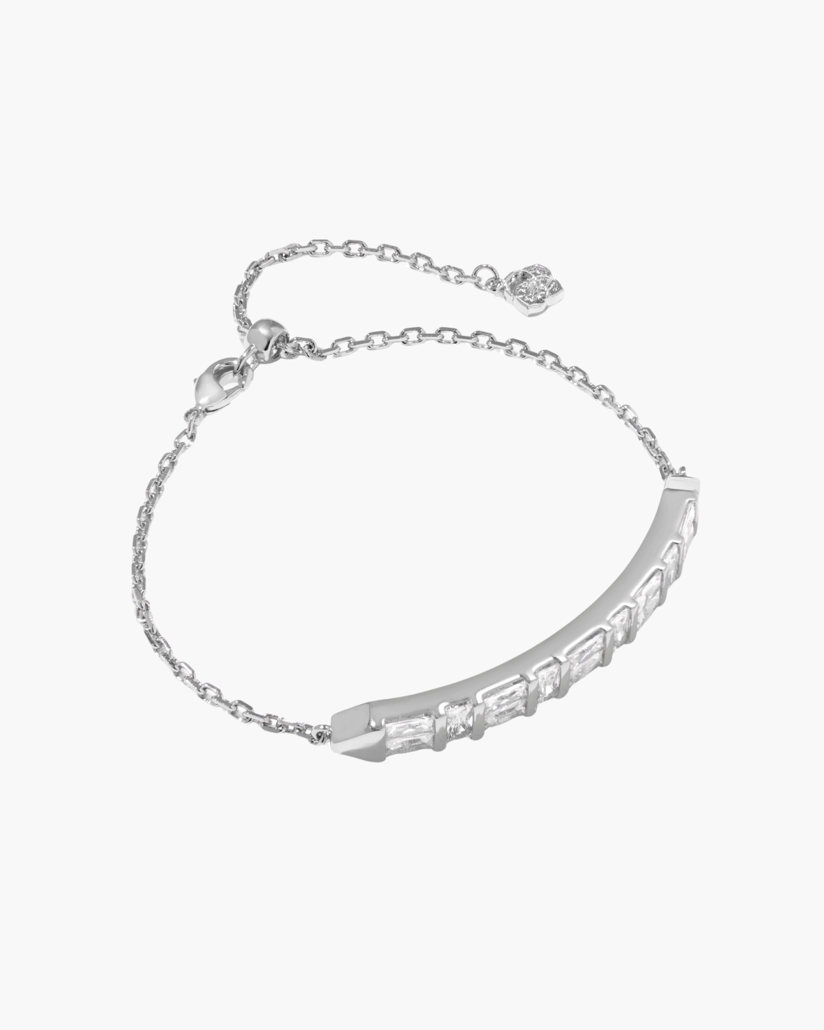 The Kendra Scott Jamie Bracelet combines polished gold-plated metal with bezel-set white cubic zirconia baguettes for refined sophistication. This delicate chain design transitions effortlessly from casual to formal, making it an essential addition to any jewelry wardrobe.