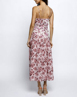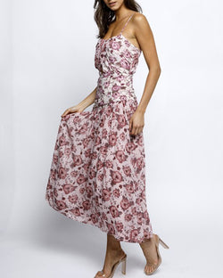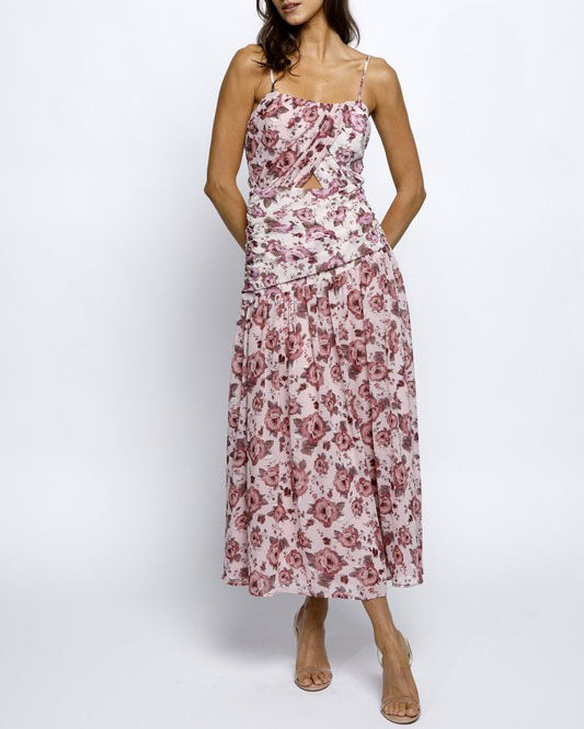 This two-tone rose print midi dress features a straight neckline, crossed-ruching upper body detailing and a midriff center peephole. A must for your next night out or special occasion, this dress would be perfect to wear as a wedding guest or to your next summer gathering.