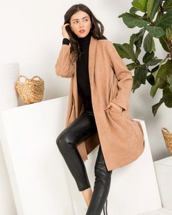 Meet your new go-to layer! This taupe suede cardigan is the definition of effortless chic—drape it over anything and watch your outfit instantly level up.