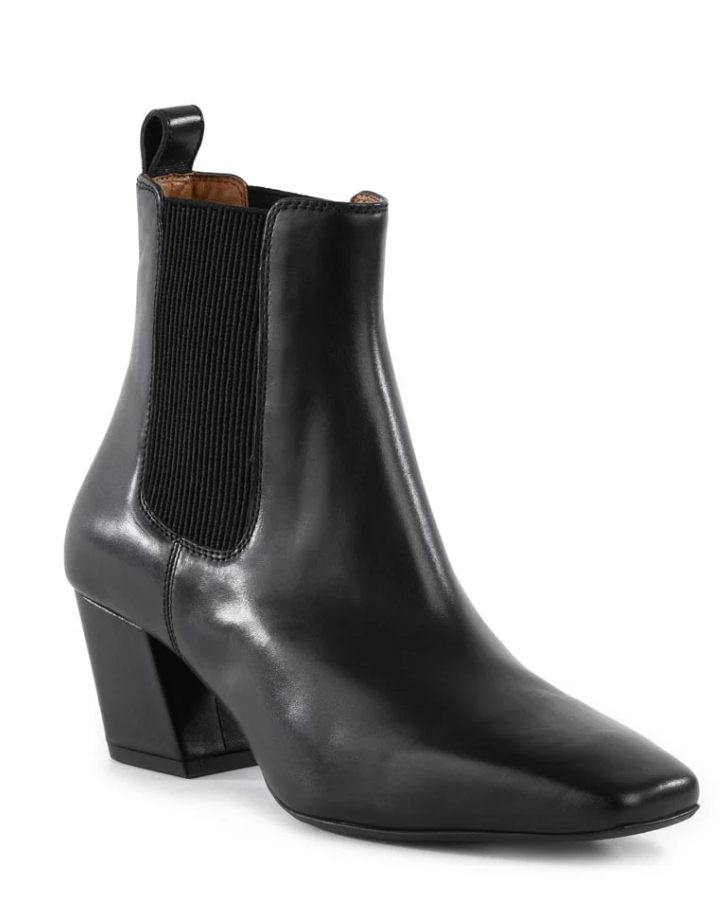 Crafted from smooth grain leather with a tonal wrapped heel, these modern Chelsea boots bring effortless sophistication to everyday style. Elastic gore panels and a subtly underslung heel create a sleek, streamlined silhouette, while an elongated snipped square toe offers a fresh twist on a timeless classic.