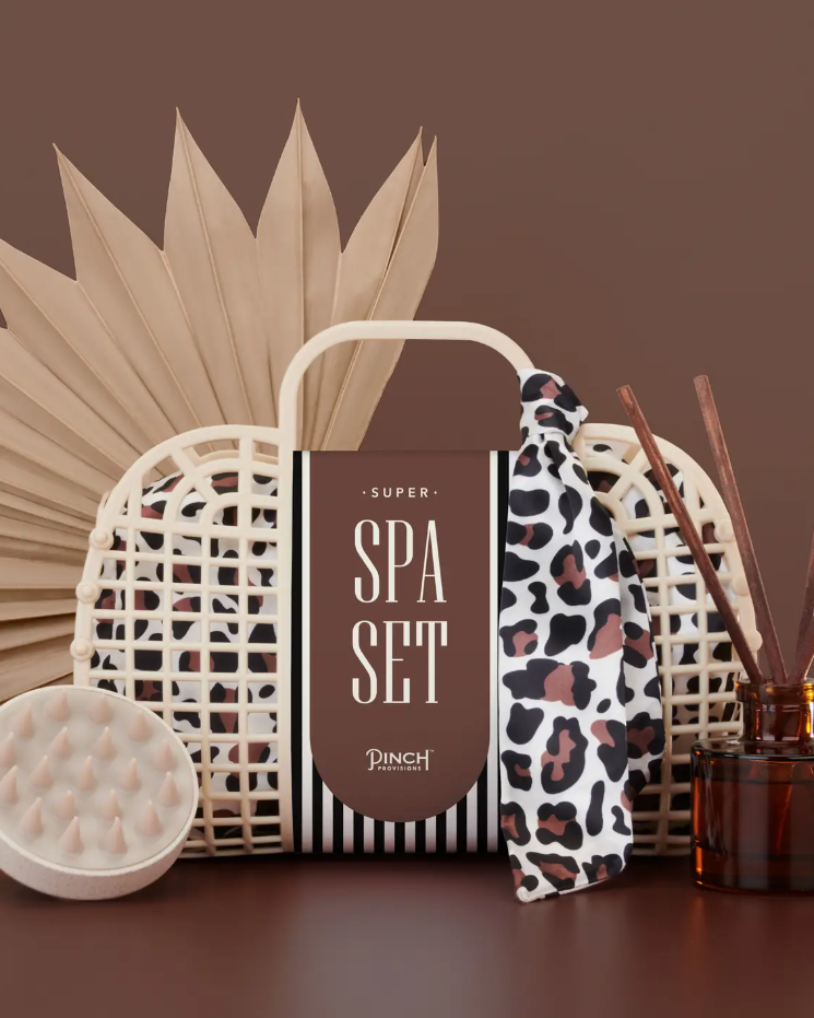 A bestseller just got bolder. The Super Spa Set by Pinch Provisions is the ultimate self-care gift—now available in a stylish leopard print that roars with personality. Thoughtfully packed in a nostalgic ivory jelly tote with a coordinating drawstring bag and scarf twill, this deluxe set is a ready-to-gift “self-carryall” your customers will love to give (and get).