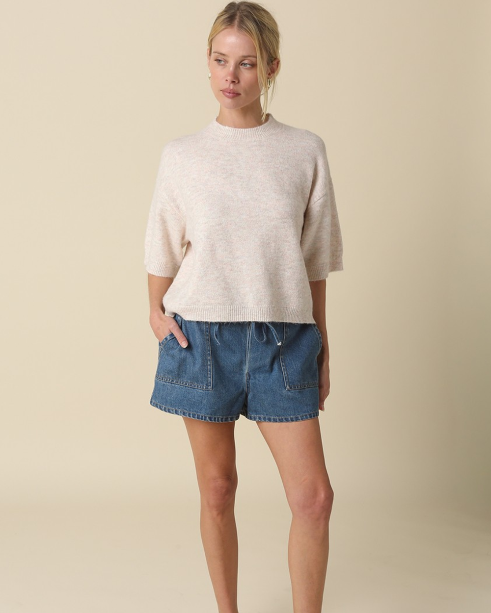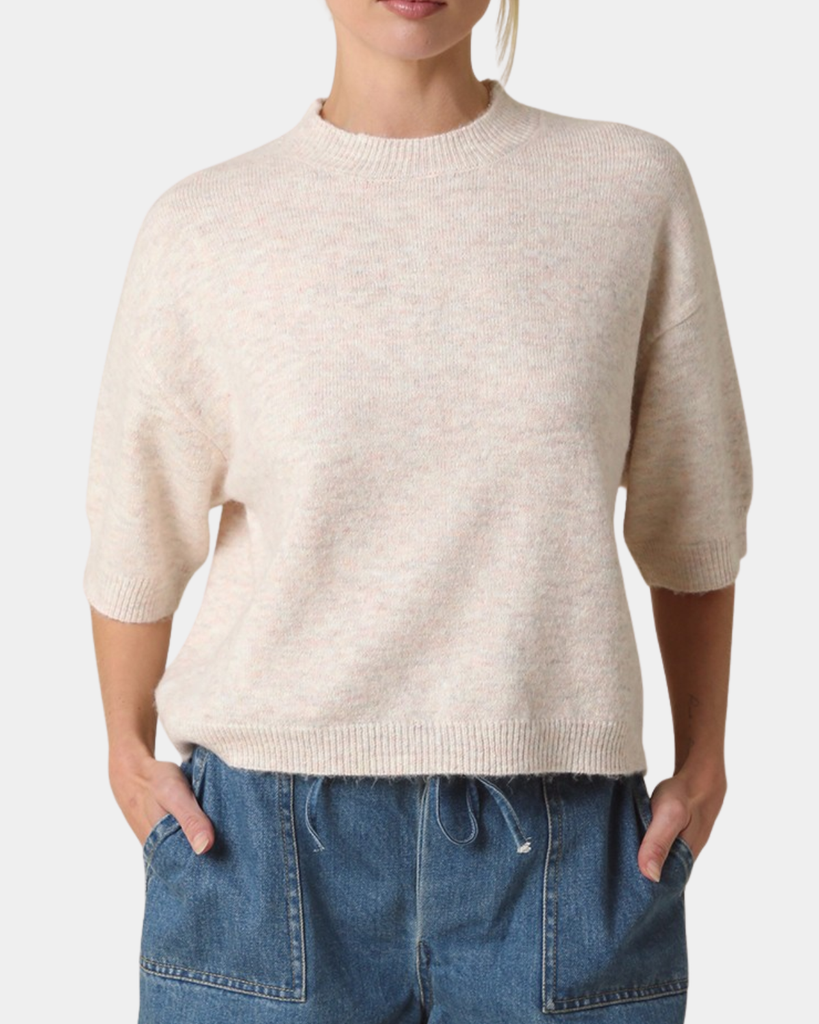 Meet the Parker Half-Sleeve Sweater—your new go-to layer. Soft knit fabric, understated mock neck, and a relaxed boxy fit that's equal parts cozy and chic. Oatmeal perfection.