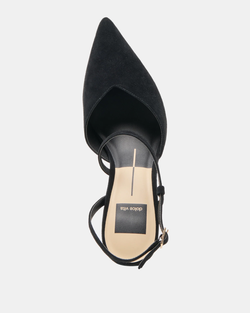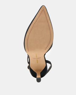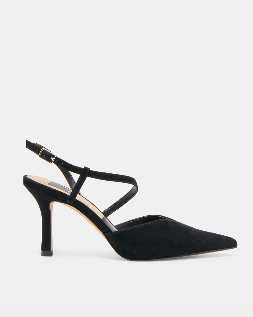 The Kamra heel from Dolce Vita is the perfect choice for your standout event look this season. Featuring a sleek pointed toe and slender stiletto heel, it is elegantly accented by a distinctive s-shaped strap. Made from recycled materials, this refined heel comes in a variety of shades to complement any ensemble.