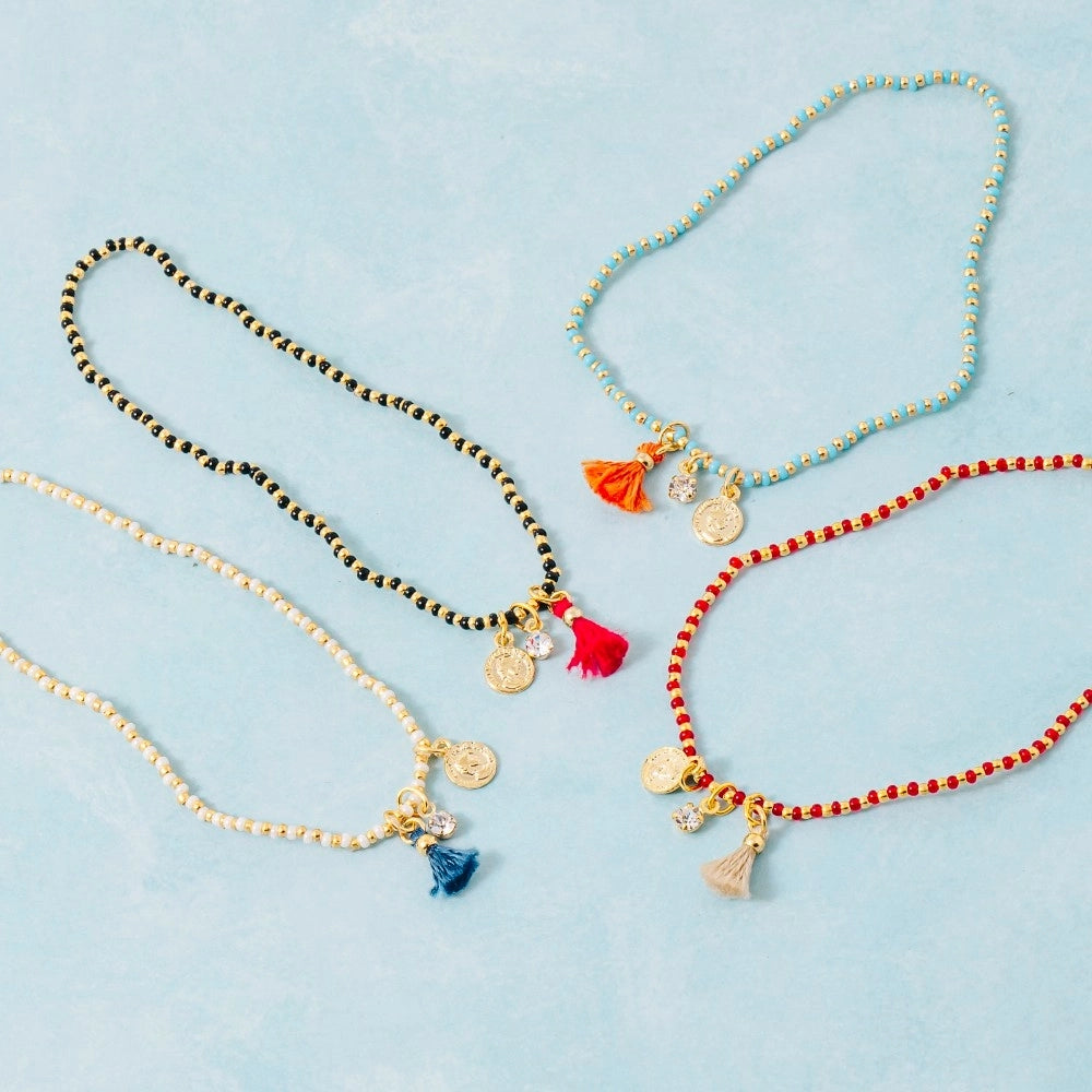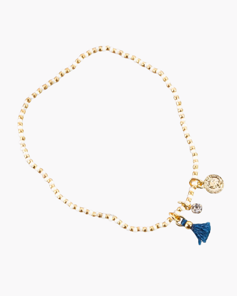 Playful beads meet timeless stretch comfort. This dainty bracelet with coin tassel charm adds just the right touch of personality to your everyday style.