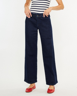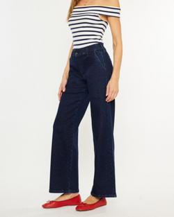 Elevate your wardrobe with these dark wash high-rise wide leg jeans that blend comfort and cool effortlessly. With a playful flair and flattering fit, they’re your new go-to for turning everyday into a style statement!