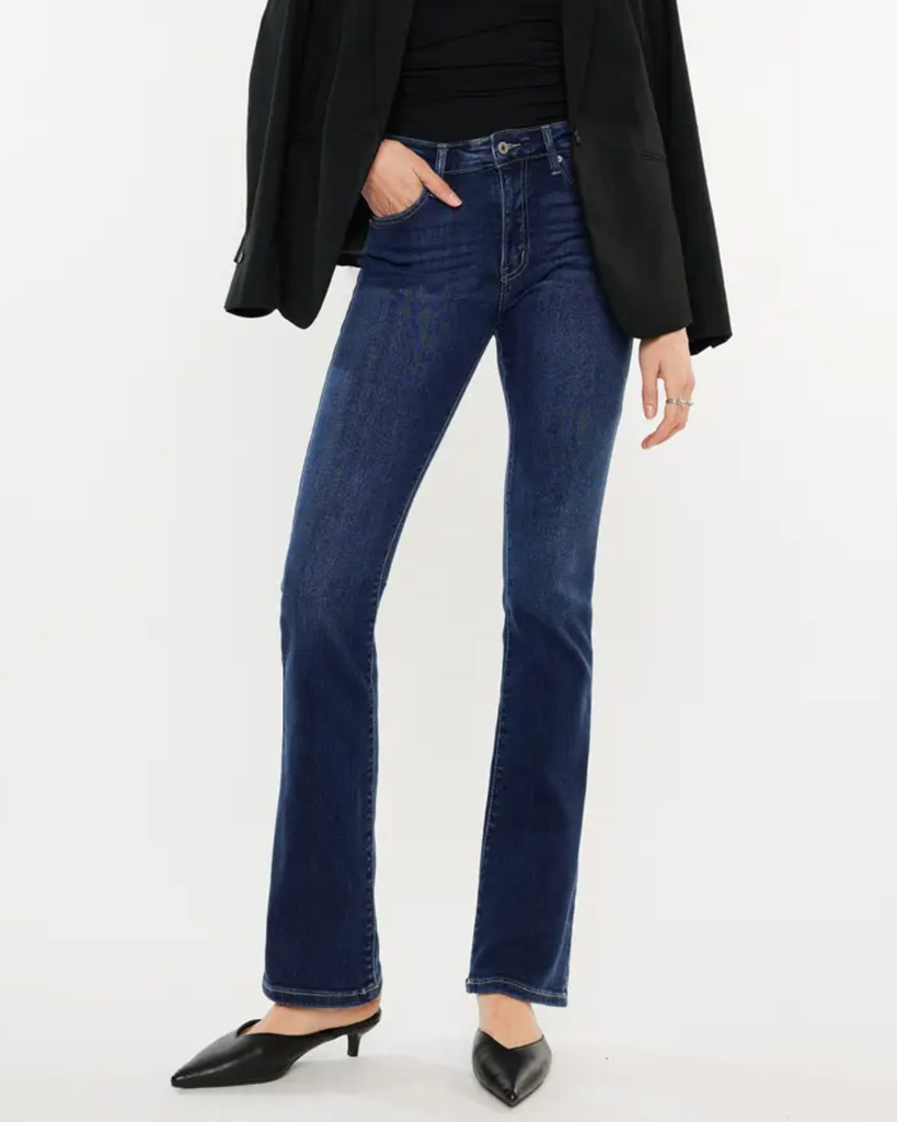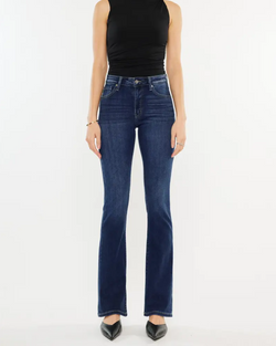 Elevate your wardrobe with these High Rise Bootcut Jeans in a timeless dark wash, designed to flatter your silhouette with a sleek, elongating fit. Crafted for comfort and style, they seamlessly transition from day to night.