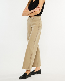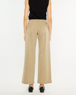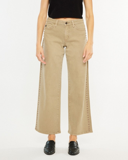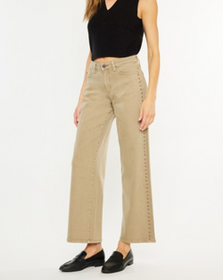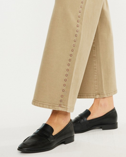 Step out in style with these tan mid-rise wide leg jeans, perfect for adding a fun twist to your everyday look. The playful stud detail brings just the right amount of edge to keep heads turning wherever you go.