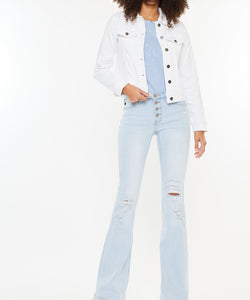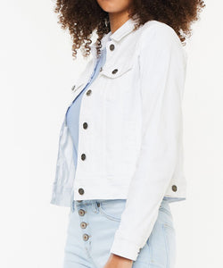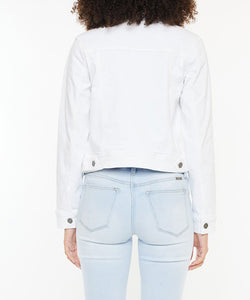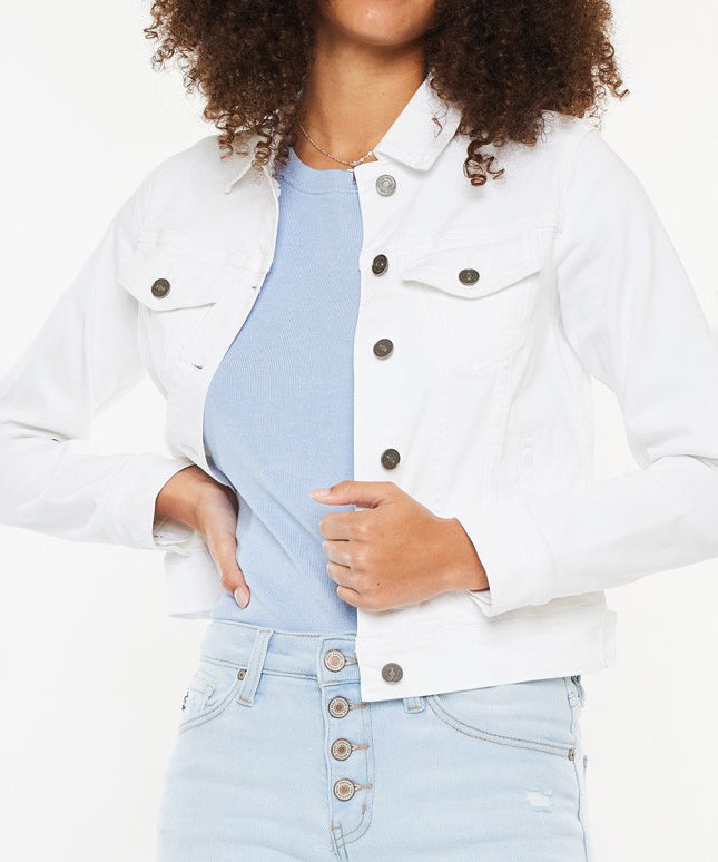 Get ready for a stylish twist with this White Denim Jacket! With its stretchy fabric, basic collar, and button-down closure, this jacket offers both comfort and chic. Complete with 2 side pockets and 2 button-flap pockets at the chest, it's the perfect addition to your wardrobe.