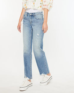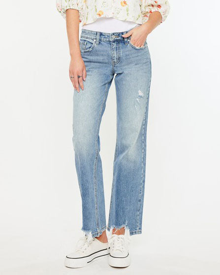 These classic straight jeans are a wardrobe staple. Always in style and comfy to wear, these jeans feature comfort stretch, 5-pocket style, light distressing at hem and throughout.