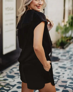 Introducing the Black Scuba Set, the perfect blend of sporty and chic! This casual women's set is more than just a look—it’s a vibe. The quarter zip top with its oversized collar gives off major fashion-forward energy while keeping it comfy and relaxed. And let’s talk about the shorts—pockets (because who doesn’t love pockets?) and a drawstring elastic waistband that means it fits just the way they want it to. Whether your customers are hitting the gym, running errands, or just lounging in style, this set has them covered. Plus, the black color means it pairs with literally everything! Stock up because this set will have your customers scuba-ing right to checkout. Trust us, they won’t want to leave the store without it!