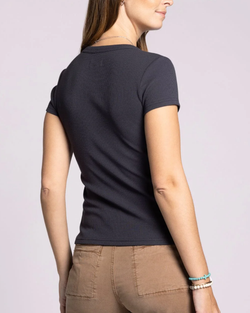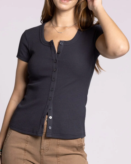 This soft top features a crew neckline and full button front closure. A wardrobe staple done in classic black for casual days and beyond.