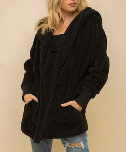 This super soft jacket is a must to wear all the time! With an open front, pockets and a hood, this one is great to throw on over lounge wear or regular wear. Feels like a blanket - so cozy!