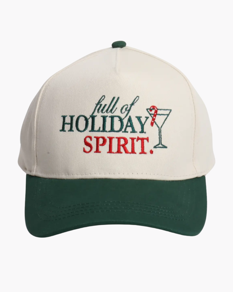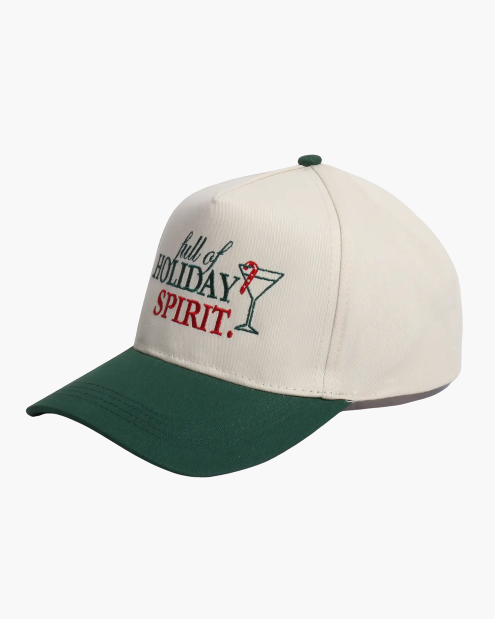 Bring a touch of holiday cheer with the Full Of Holiday Spirit Embroidered Hat two-tone 5-panel hat, showcasing a charming embroidered patch—ideal for festive occasions or as a thoughtful gift.