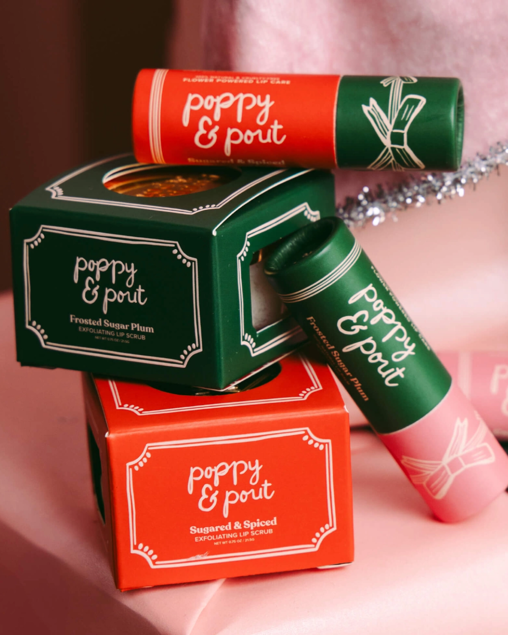 The limited edition Frosted Sugar Plum Lip Balm is a sweet and fruity winter treat that keeps your lips smooth and hydrated with natural, simple ingredients like beeswax, coconut oil, and a splash of Vitamin E. Every swipe feels like holiday magic in a fun, eco-friendly tube!