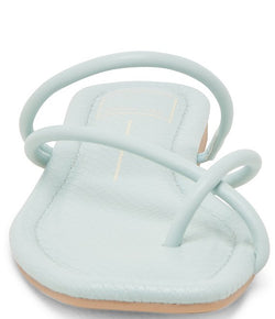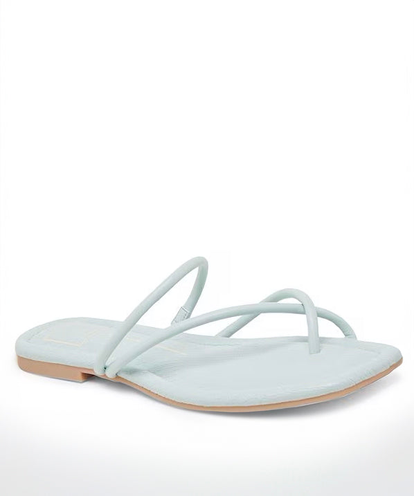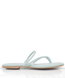 A reptile-pattern footbed adds subtle charm to a super-slim sandal with a thong-style toe loop for breezy comfort.