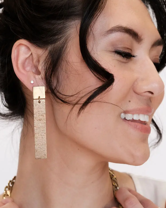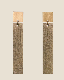 The Vintage Bronze Lennons are sleek, geometrically inspired drop earrings with a square accent post. These lightweight statement earrings feature our warm, deep-brown metallic leather that effortlessly captures the look of metal with none of the weight.