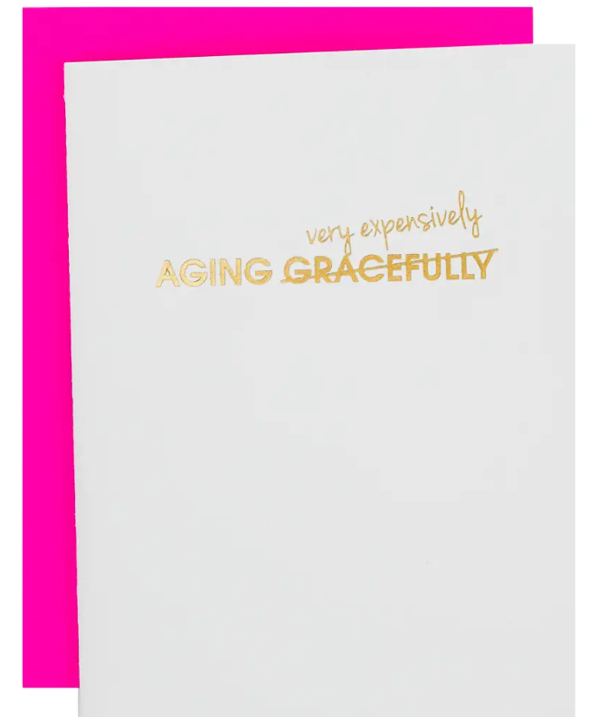 The "Aging Gracefully" card is letterpress printed on a vintage printing press in sunny California.