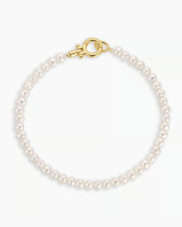 A truly timeless style, a genuine freshwater pearl bracelet adds sophistication to your bracelet stack. Wear your pearl bracelet with your favorite gold and 18k gold plated bracelets. Into a matching moment? Check out the Lou Pearl Necklace or Pearl Crew Hoops.
