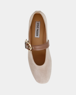 Crafted from supple taupe suede, the Steve Madden Lucia Mary Jane Flats combine classic charm with modern comfort. Their adjustable strap ensures a secure fit, making them ideal for all-day wear with a polished, versatile look.