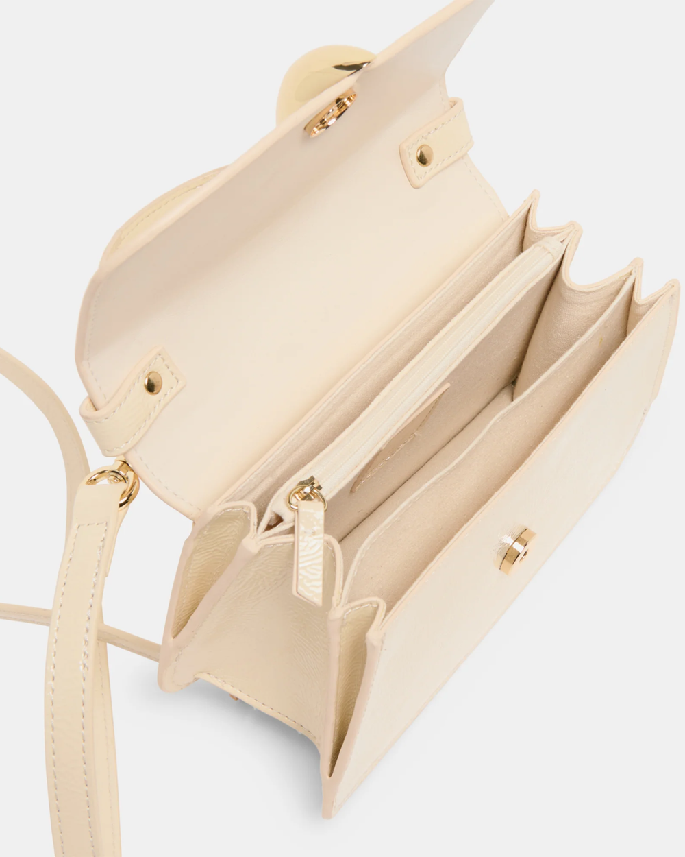 The Lucia crossbody bag offers a sophisticated, structured design with a stylish handle and gold accents, perfect for pairing with both elegant dresses and casual denim. Its versatile look transitions seamlessly from day to night.