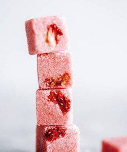 You'll win the "Best Friend" award for this fun gift! It's a bold infusion of all natural strawberry with cane sugar that makes for the most exciting champagne experience! An all natural sugar cube, naturally dyed with strawberry and made locally. These cubes feature a sweet, yet delicate fruit tart tart taste. Perfect to add to champagne or iced tea!