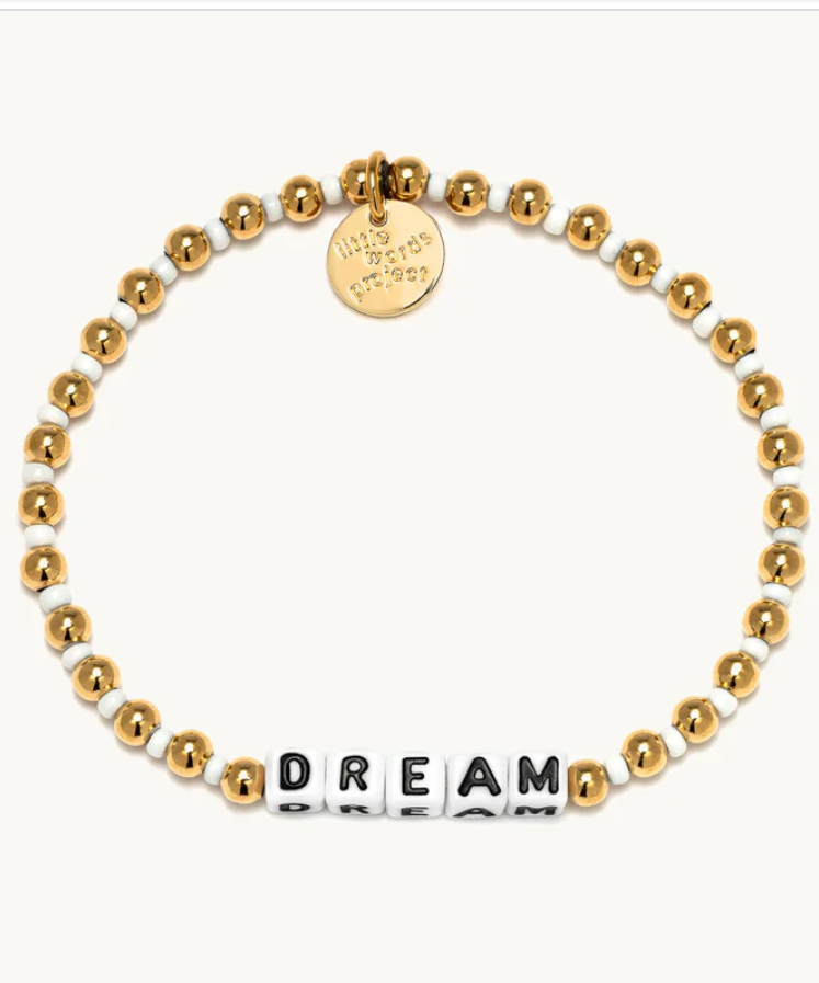 Our favorite Little Words Project bracelets are back and this time made in waterproof gold filled material. Choose your saying and stack them up. The perfect accessory!