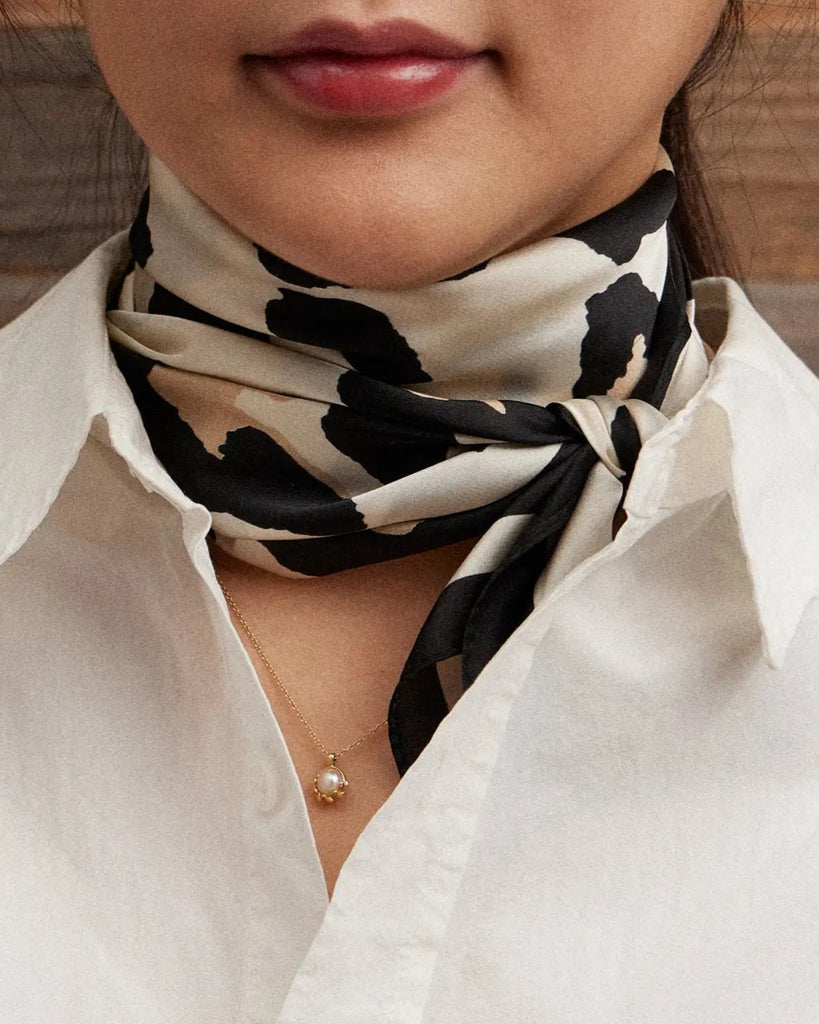 Unleash your wild side with this leopard print scarf, a statement accessory that adds a touch of fierce elegance to any outfit. Designed with a luxurious silk-like texture, this square scarf features a bold animal print with a timeless neutral palette, making it perfect for styling in multiple ways. Wear it as a neck scarf, headband, or tie it to your bag for a trendy accent.