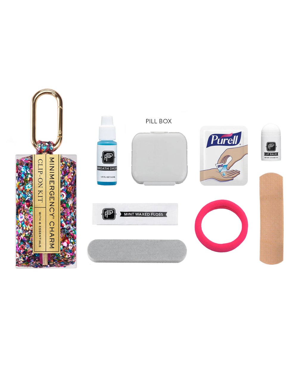 Gemma Glitter Minimergency Charm by Pinch Provisions is your stylish sidekick for life's unexpected moments. This sparkly keychain packs practical emergency essentials with fashion-forward flair, proving you can be both fabulous and prepared. The perfect accessory for any woman who refuses to compromise on style or readiness.