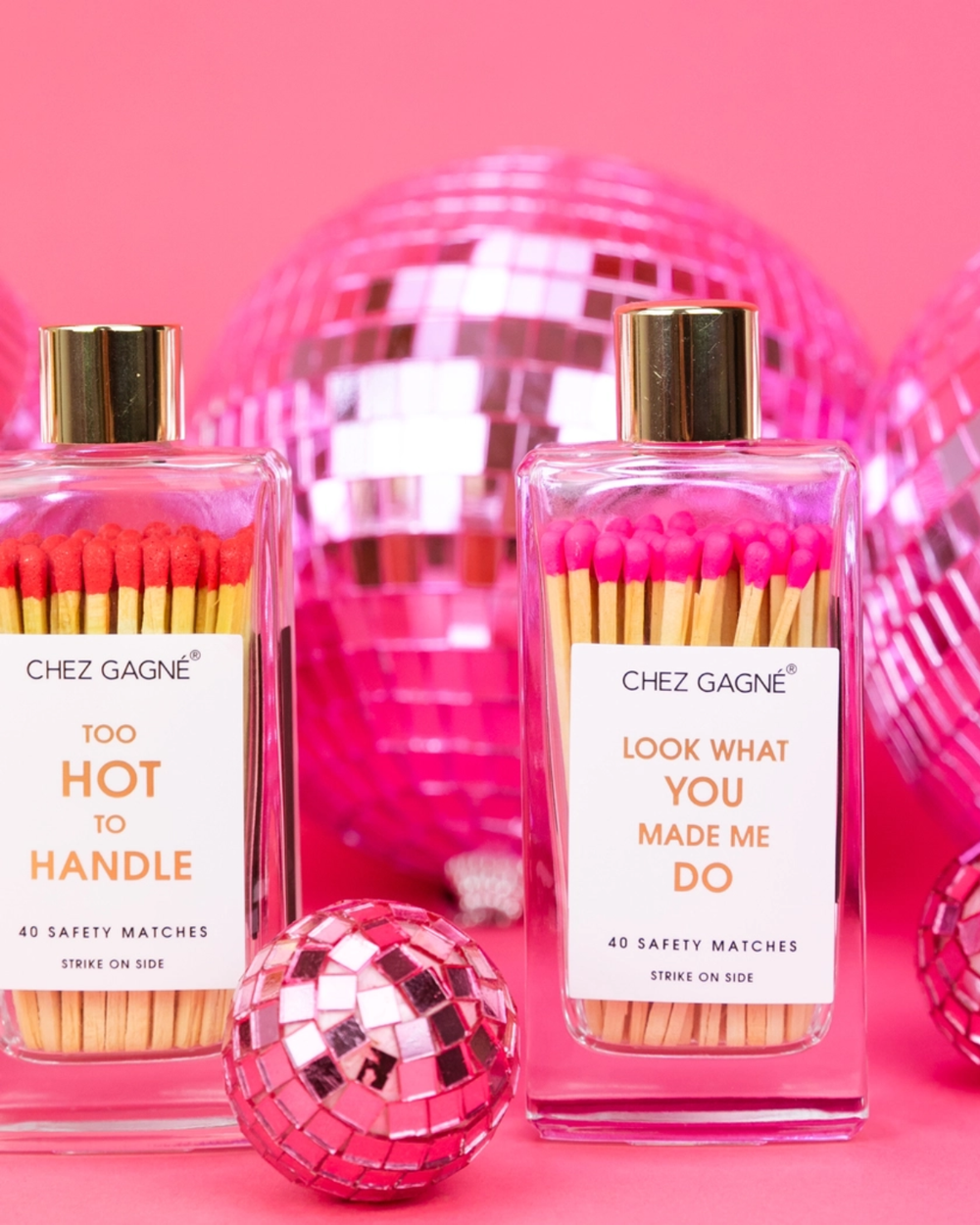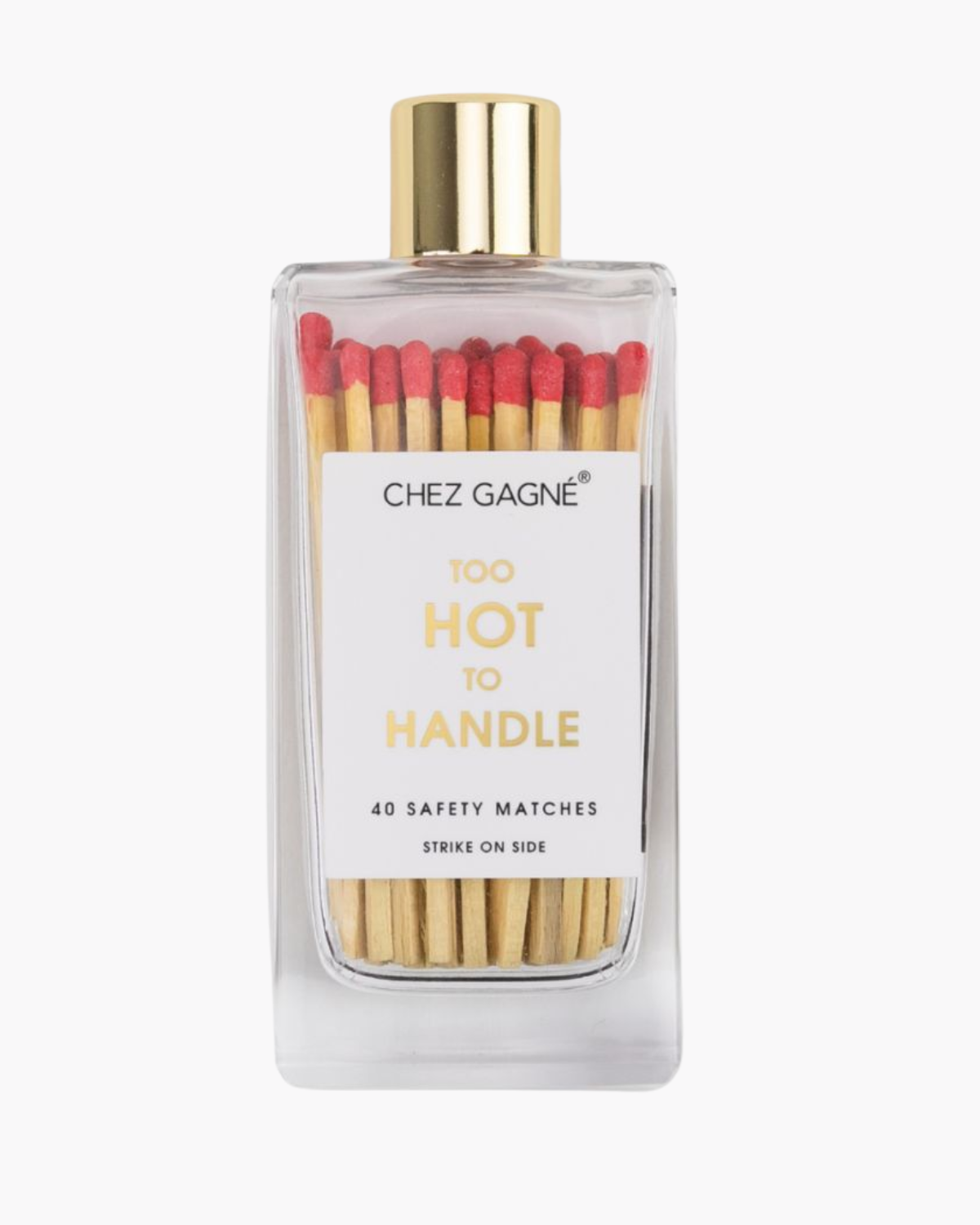 Light up your moments with Too Hot To Handle—a fiery glass bottle filled with bold red-tipped matches and finished with a chic gold lid. It's the perfect mix of practical and playful, ready to spark fun and flair wherever you go.