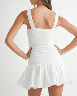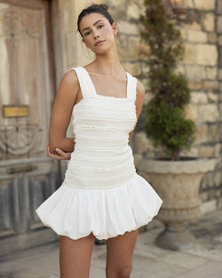 This little white dress is perfection! Featuring a sleeveless silhouette, tiered lace bodice and a bubble hem, this dress is a must for graduations, parties, a night out and more. Summer done right!