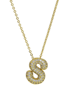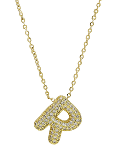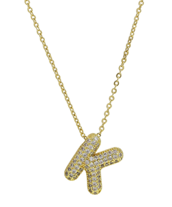 This Gold Balloon Initial Necklace is a timeless classic. Crafted from 18k gold, each necklace is designed to stand out with its delicate Bubble balloon style lettering. It makes an ideal gift for any special occasion. It glistens in the light with the intricate cz stones added.
