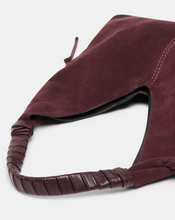 The timeless Merrick bag is a must-have for any collection. Crafted from sumptuous burgundy suede, this slouchy shoulder hobo holds your daily essentials while elegantly elevating your autumn outfits.