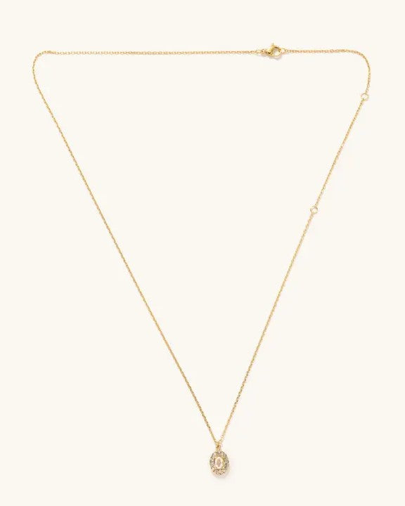 Accessorize with our Oval Crystal Adjustable Necklace in gold! This stunning necklace features a sparkling oval crystal that can be easily adjusted to your desired length. Perfect for adding a touch of elegance and glamour to any outfit.