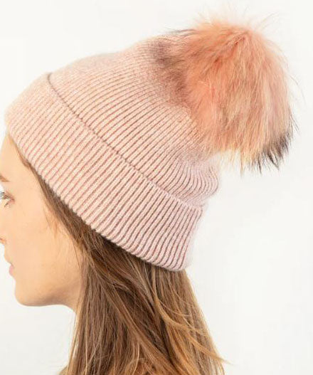 This soft and cozy ribbed knit beanie features a pom pom detail. The perfect cold weather accessory.