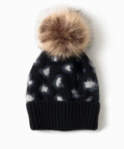 Stay cozy and warm in this darling leopard beanie hat with a pom pom accent. The perfect winter accessory!
