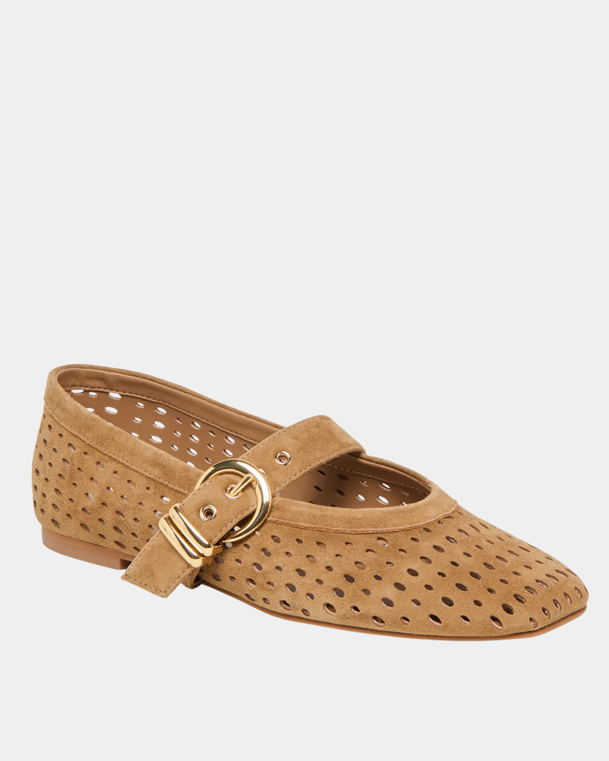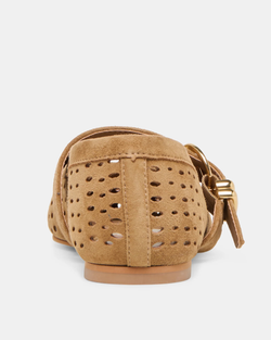 The Mikel flat showcases expert craftsmanship with its signature mary-jane silhouette and burnished gold buckle detail. Constructed from responsibly-sourced perforated suede, this ballet flat delivers refined versatility across a curated palette of colorways.