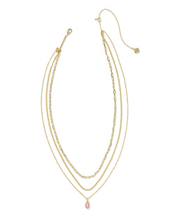 Consider your necklace stack handled with the Mini Elisa Gold Triple Strand Necklace in Carnation Kyocera Opal Three distinct chains topped off with a dainty mini Elisa, this is the perfect grab-and-go piece to pull off an effortlessly layered look.