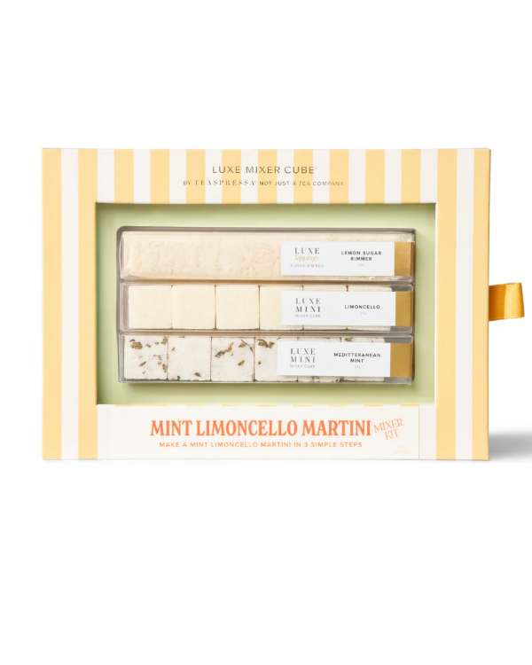 Elevate your summer with the Mint Limoncello Martini Mixer Kit. This set includes a Shimmering Lemon Cube, Mint Cube, and Lemon Sugar Garnish Rimmer to create a crisp and dazzling martini inspired by Mediterranean breezes.