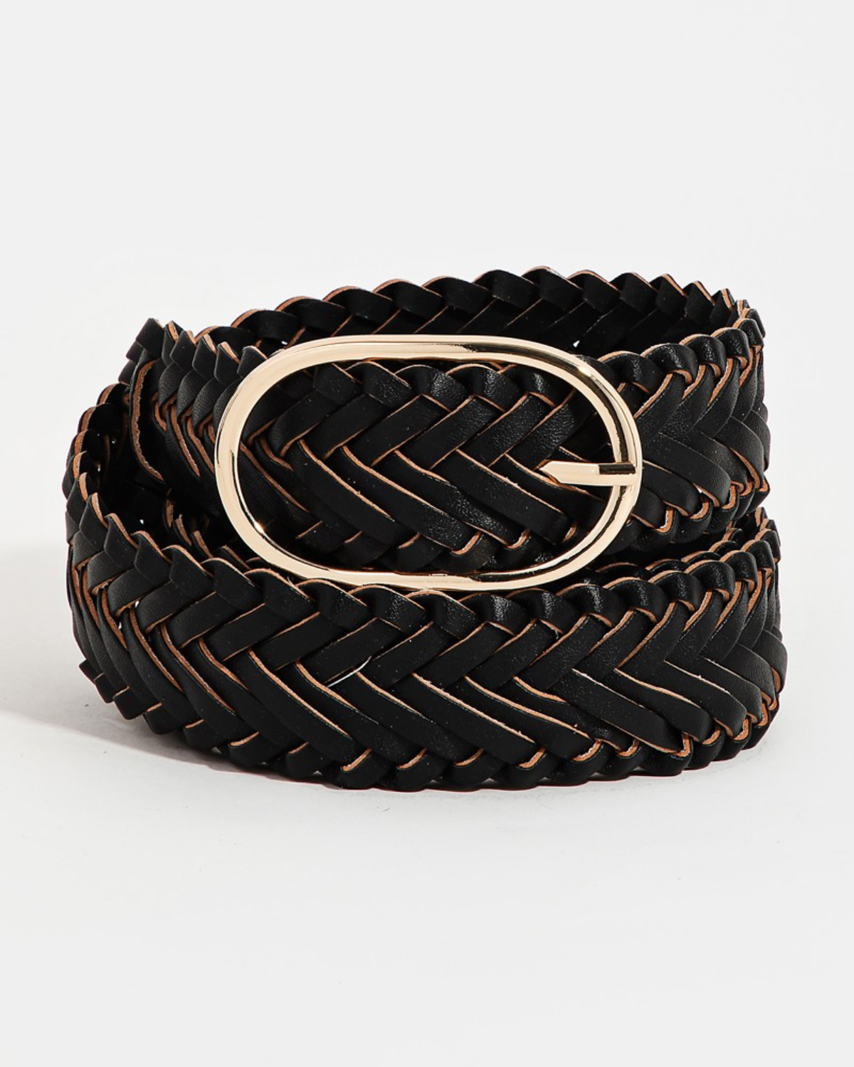 Elevate your ensemble with this expertly crafted braided belt featuring a sleek oval faux leather buckle. Its refined design adds subtle sophistication, perfect for enhancing any outfit with a polished finish.