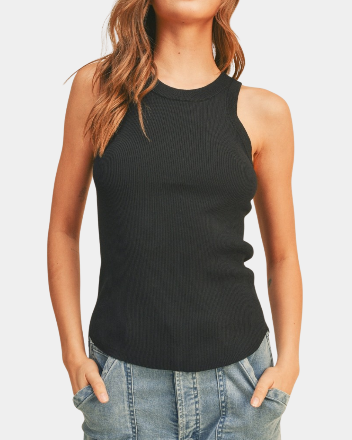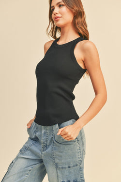 Slip into effortless style with this timeless ribbed tank. The sleek hue pairs with everything in your closet, while the fitted ribbed fabric hugs you just right.