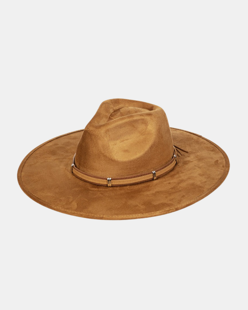 The Wide Brim Hat in camel embodies timeless sophistication with its sleek design and expansive brim. This elegant accessory enhances any outfit while providing graceful sun protection.