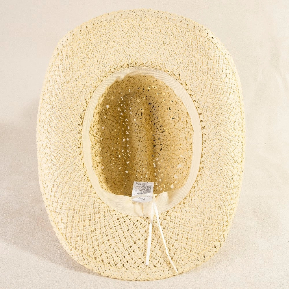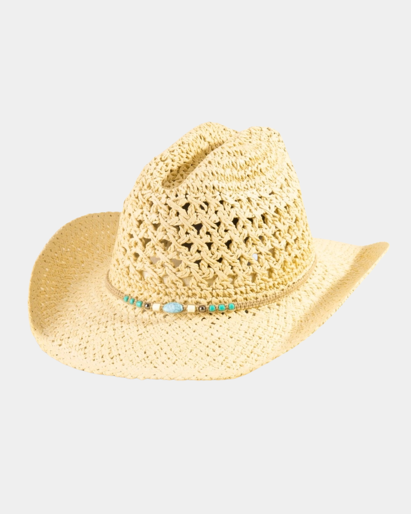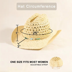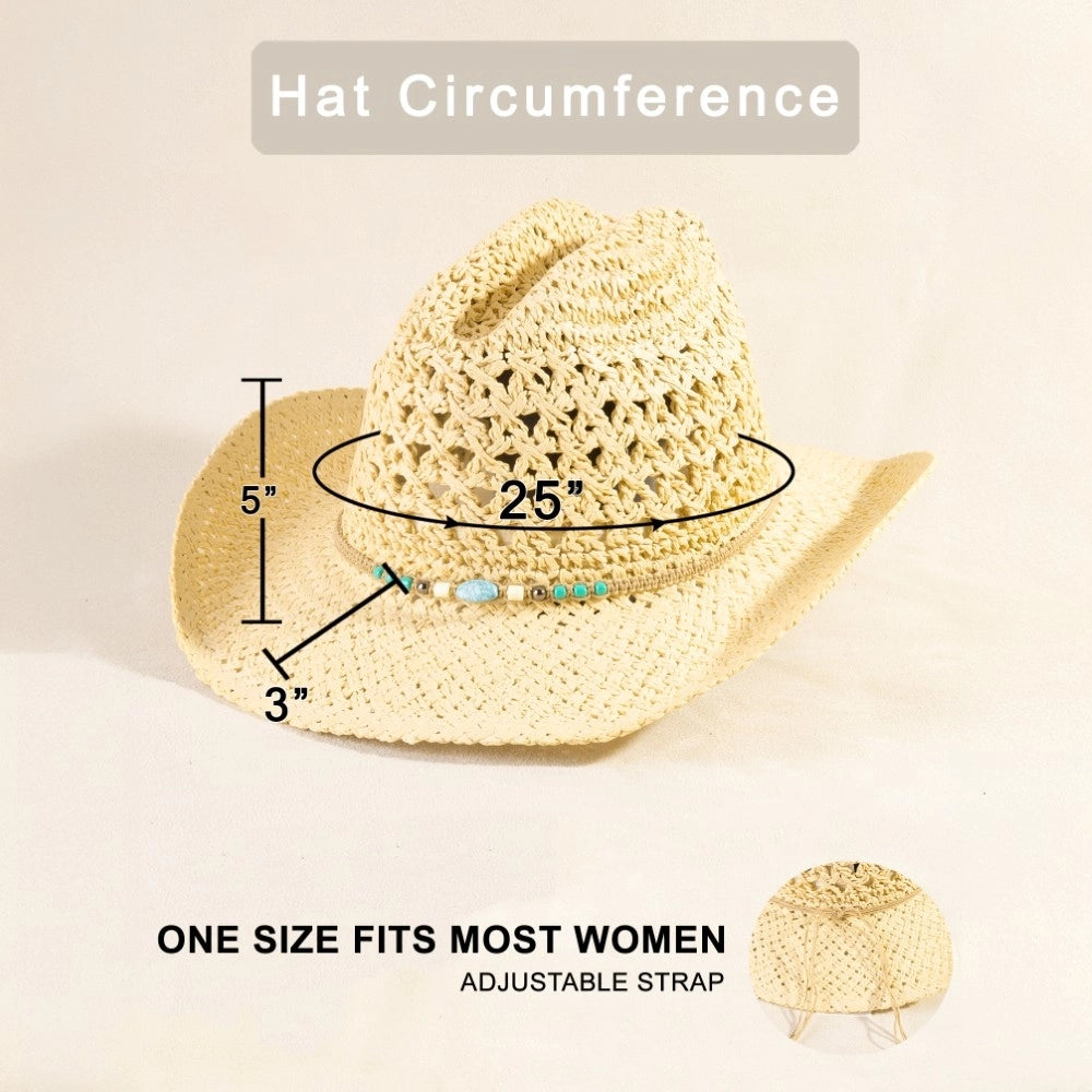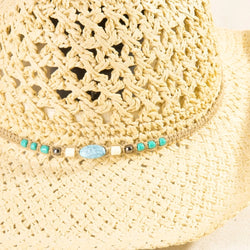 Rock a fun, eye-catching vibe with this ivory cowboy hat featuring intricate braided beads detailing. Perfect for adding a playful twist to any outfit, this straw style delivers Western charm with a touch of sparkle.