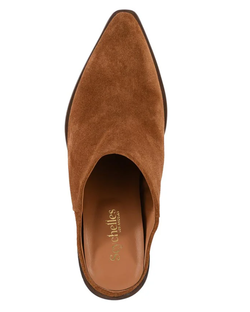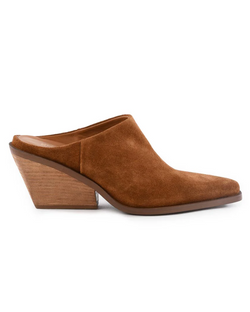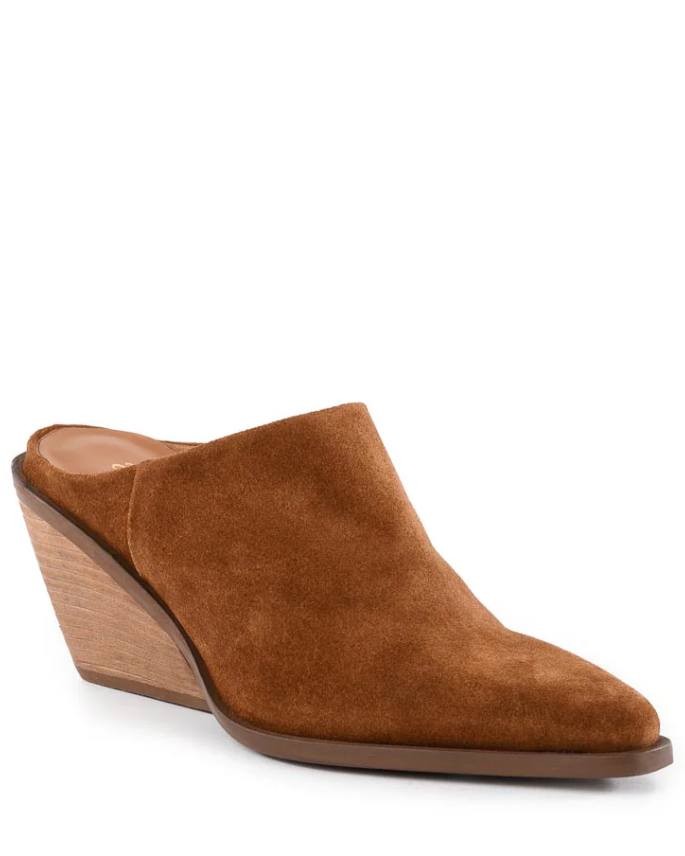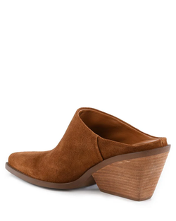 Taking a minimalistic approach to Western style, this sleek pointed toe mule blends the ruggedness of a cowboy boot with the ease of a slide. With a lipped open back and wedged, underslung stacked heel, it’s a modern city-ready look that promises to be a workhorse of your closet.