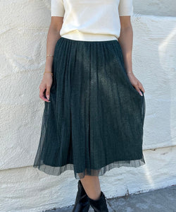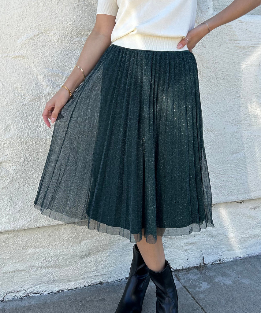 Get ready to twirl in our Pleated Mesh Skirt in Hunter Green! Made with soft, breathable mesh, this skirt will surely turn heads with its playful pleats. Perfect for a day out or a night on the town. (Prepare for compliments!)