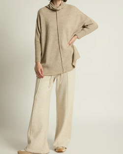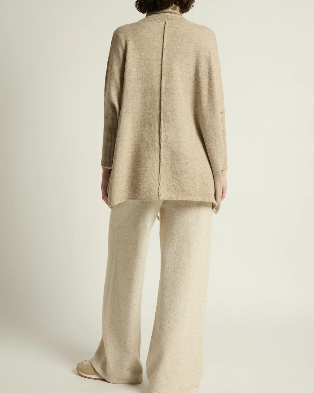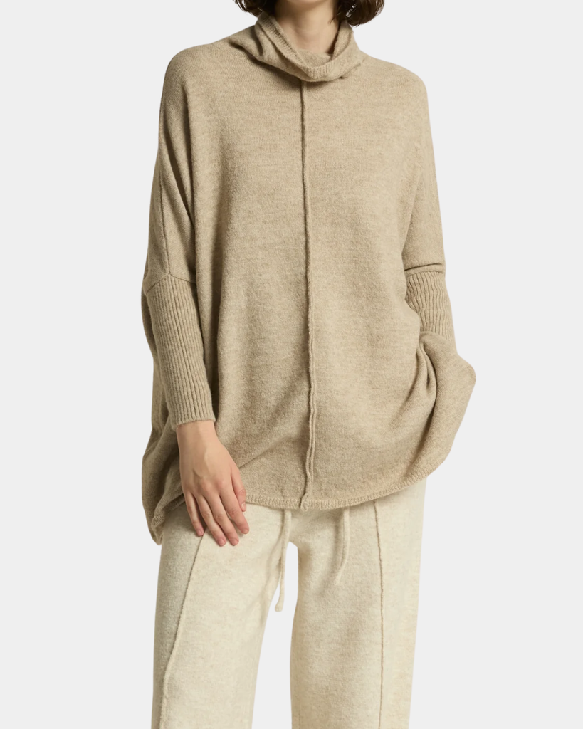 Elevate your wardrobe with the Seam Turtleneck Soft Sweater in taupe, offering refined comfort through its plush fabric and elegant design.