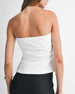 This chic strapless top features a one side ruched design. An elevated basic that can be dressed up or down.