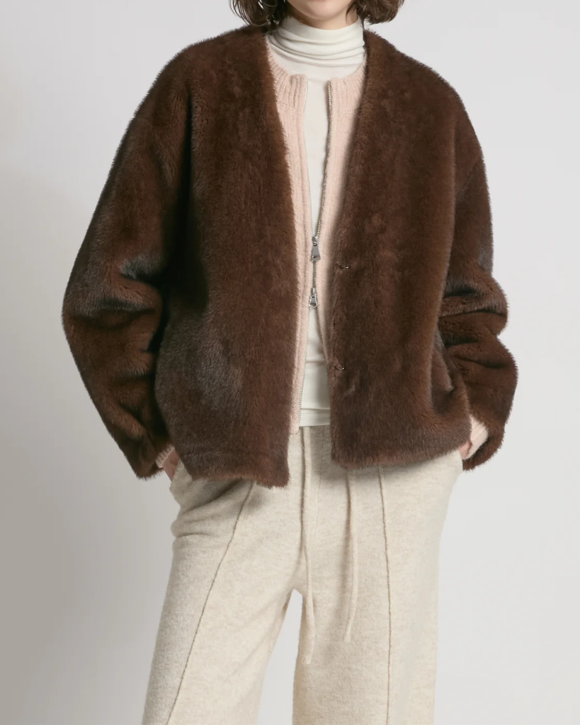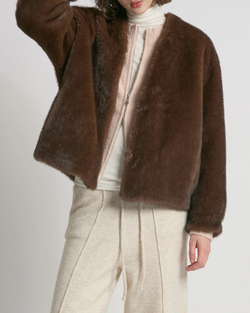 Cozy meets chic in the Reve Fur Jacket—your new espresso-colored cuddle buddy. Perfect for turning heads and warming hearts on cool days!